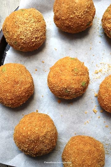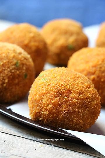 The post Golden Vegan Gluten Free Rice Balls – Arancini appeared first on Mouthwatering Vegan.