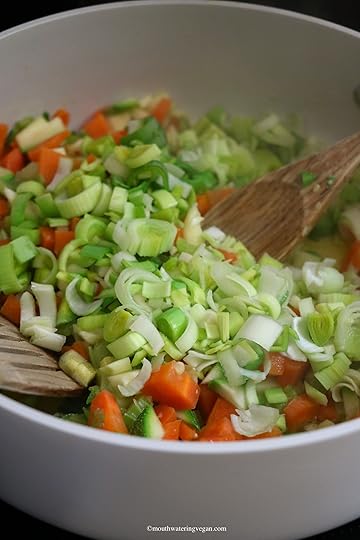 3. Once the vegetables have softened (test them with a knife), add the remaining water, and simmer uncovered for a further 15 minutes.