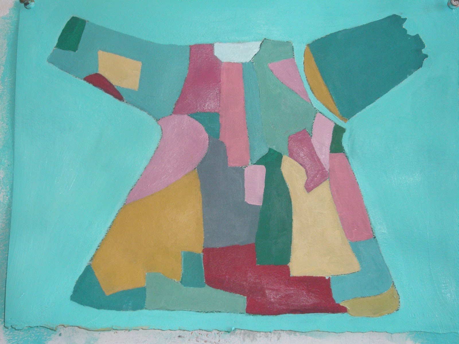 So I went back to the studio, enlarged the postcard, traced the pattern of patches on to a piece of drawing paper, opened my brand new tubes of acrylic paints, mixed up some colors, delighting in the feel of paint beneath my brush and—painted. I was happy. Lost, the way I’m lost, writing.