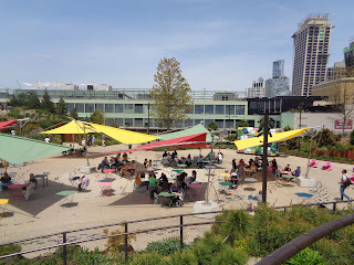 Throughout the park, there are fun objects such as Spinning Discs and Dance Chimes. The latter seems popular with young and old judging from the amount of music being made. And it certainly wasn't just kids enjoying the spun chairs on the patio.
