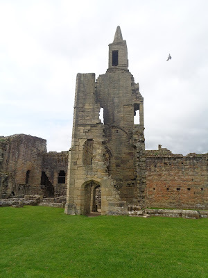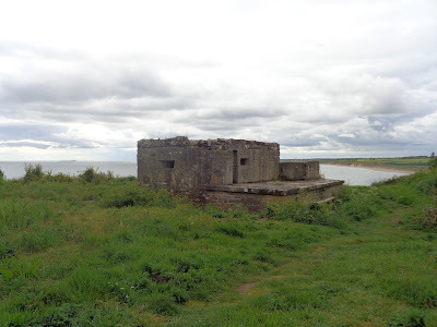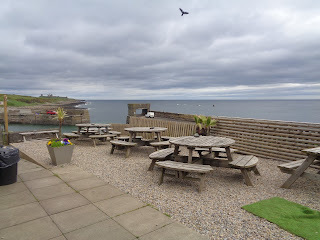 Three miles from Alnmouth is the village of Boulmer, a tiny fishing village, so small it doesn't even have a shop. But of course, being an English village, it does have a pub. Which was just as well for us, because no sooner had we got into Boulmer than the skies opened in another torrential downpour. Unfortunately, we got into Boulmer just after eleven and the bar didn't open until twelve, so we had to take refuge in an old stone bus shelter in the interim! The state of the interior suggested it's main occupants were birds, but it was better than getting soaked yet again.