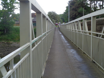 But finally, our destination came into view with its pretty multicolored buildings. And could that possibly be blue sky ahead?The road bridge across the estuary into Alnmouth is a grade II listed structure built in 1864 called the Duchess Bridge. The stone side of it is just visible on the right of the metal bridge below. Being so old the bridge isn't wide enough for cars and pedestrians so the latter have to use the metal walkway. I can't help wondering whether the designers couldn't have come up with something a little more attractive and in line with the old bridge.