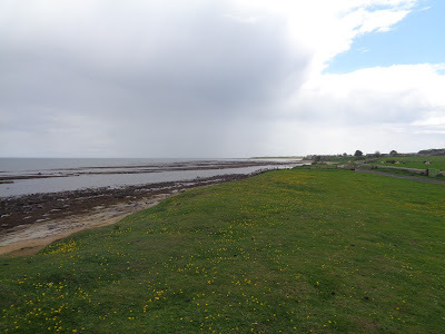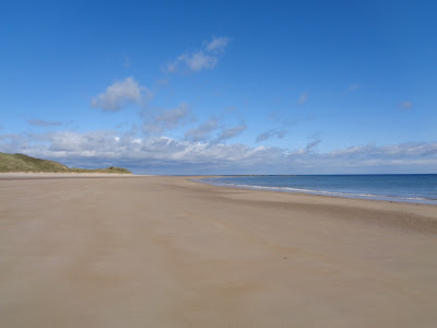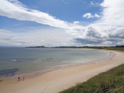 Looking back, we had wonderful views of the sweep of sandy beach at Embleton Bay with the ruins in the distance. And finally, there was even some blue sky!
