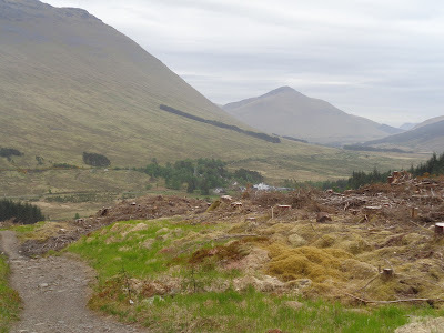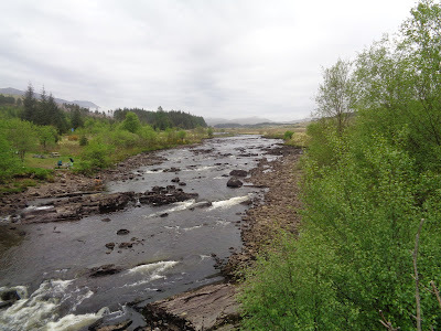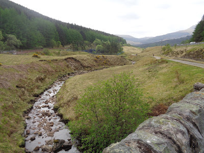 We left the Bridge of Orchy village by road, appropriately enough over the stone bridge across the River Orchy which gave the area its name. It was built in 1750 by the British Army following the 1746 Battle of Culloden. Looking back gave us a view of the village nestled in the trees, the last habitation we'd see for several hours.