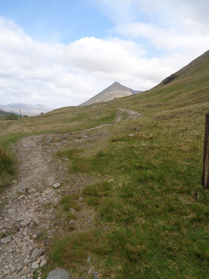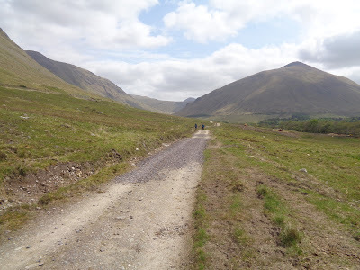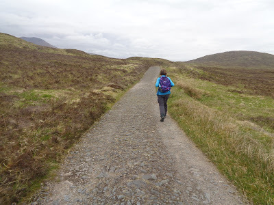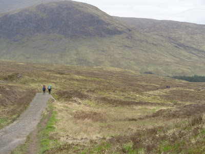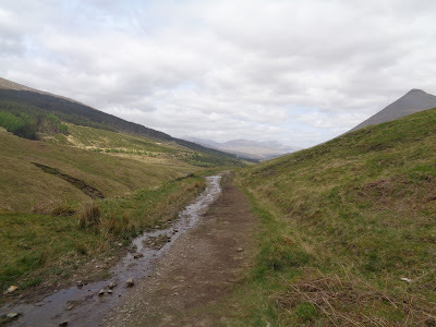 Fortunately, the path winds mostly around the mountains (or Munros as they are called in Scotland if they are over 3,000 feet) rather than up them, though there is a gentle rise in gradient on this stage of the walk.