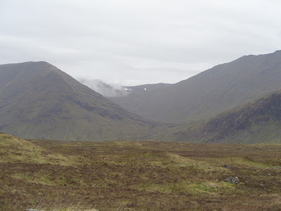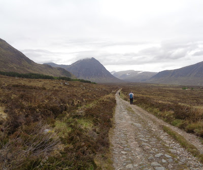 On Day 2 on The West Highland Way, we were rather hoping for sunshine as our journey would take us across Rannoch Moor which my guide book, The West Highland Way by Terry Marsh had a rather dire warning about - "In the right conditions, it is quite simply a wonderland, but one that could become a nightmare with any adverse change to the conditions." Given the unpredictability of Scottish weather and the knowledge that if there was a thunderstorm there was absolutely nowhere to shelter I could only hope that the cloudy skies were the worst the day would bring.