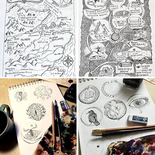 I began to create maps of the alternate Scotland and Seal Islands where the novel takes place. There is also a map that shows how Kára perceives of time—a temporal map. From that grew sketches for chapter headings. Polished versions will be included in the book