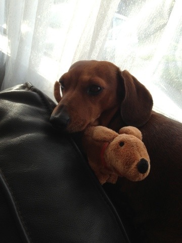 And Evie our crazy dachshund with her mini self from the grandparents series.