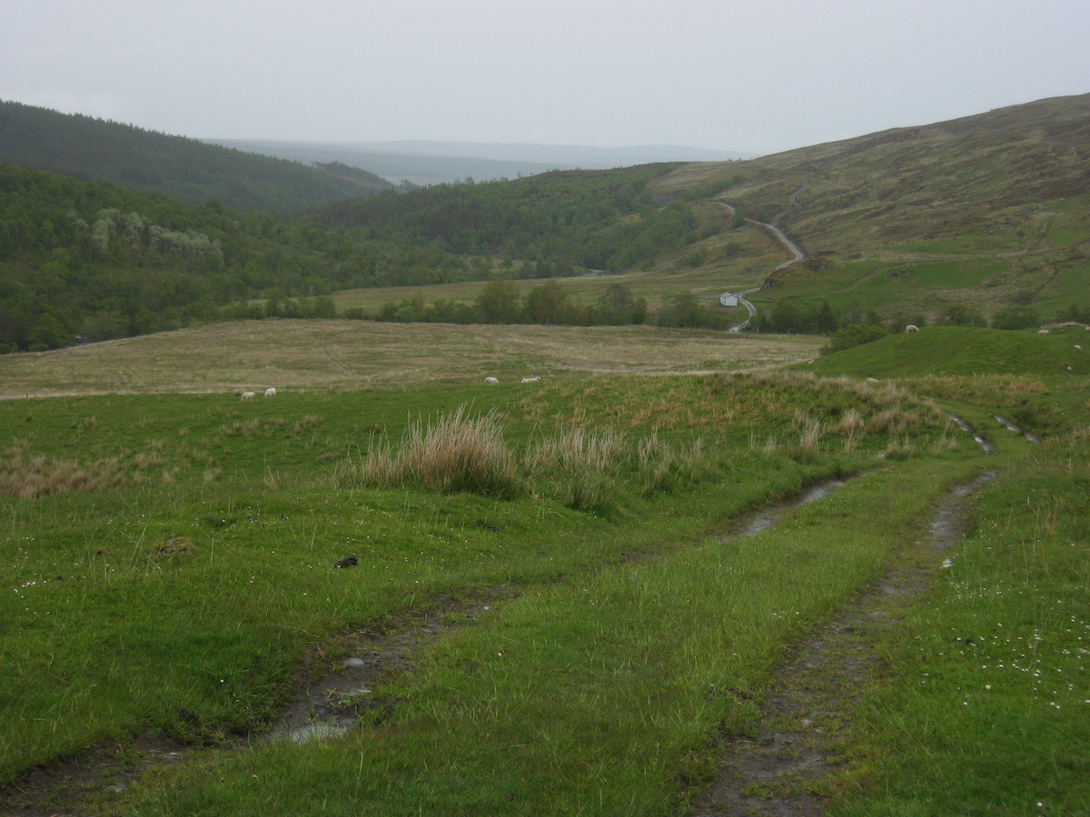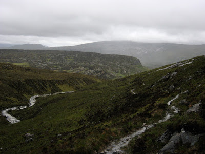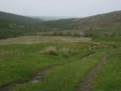 As before, the good tracks eventually disappeared and I found myself traversing boggy hillside above a forestry plantation, following an eroded and muddy path. It was no worse than the terrain I'd already encountered that day, however, and I made good time along that section. Huge rain squalls swept in at regular intervals, drenching me for half an hour before sunshine dried me off for another 30 minutes. This was repeated several times. The next band of rain would inevitably swoop in just after I had peeled off my waterproofs.