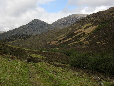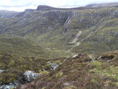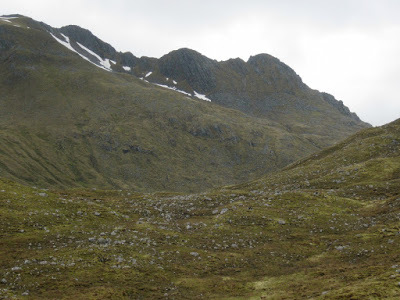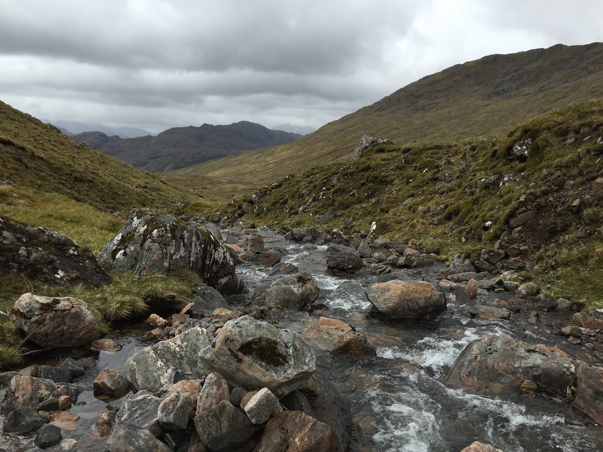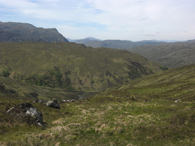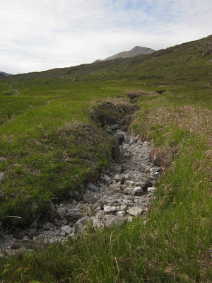 Upper Glen Dessary was a bleak and very beautiful place. I'd never been to Knoydart before but the geology of the Rough Bounds was all around me: sharp peaks, uniquely complex and rugged terrain, and a wildness that can scarcely be found in the mountains of Lochaber and Glen Coe that I know so well. There was a path marked on the map, but it was so faint underfoot by this point that I found it difficult to follow (although the fact that I was frequently goggling up at the mountain ridges above me may have had something to do with that).