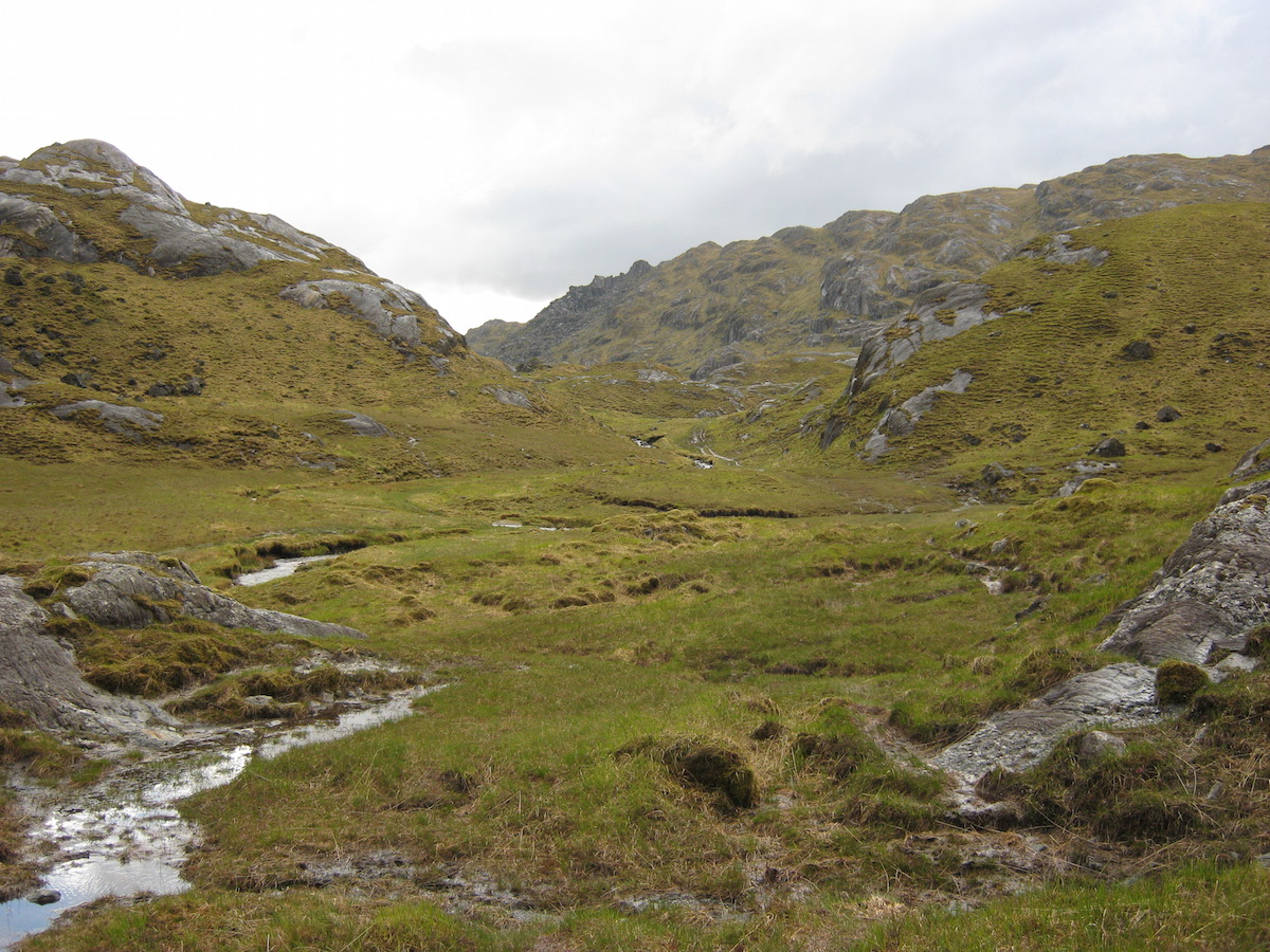 When I made it past the cliffs there was another vast bog to negotiate, made confusing by complex contour lines. Fail to take compass bearings here and you could end up losing hours of time and a great deal of energy.