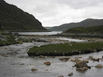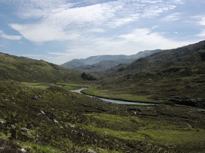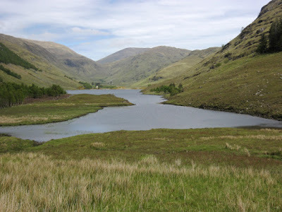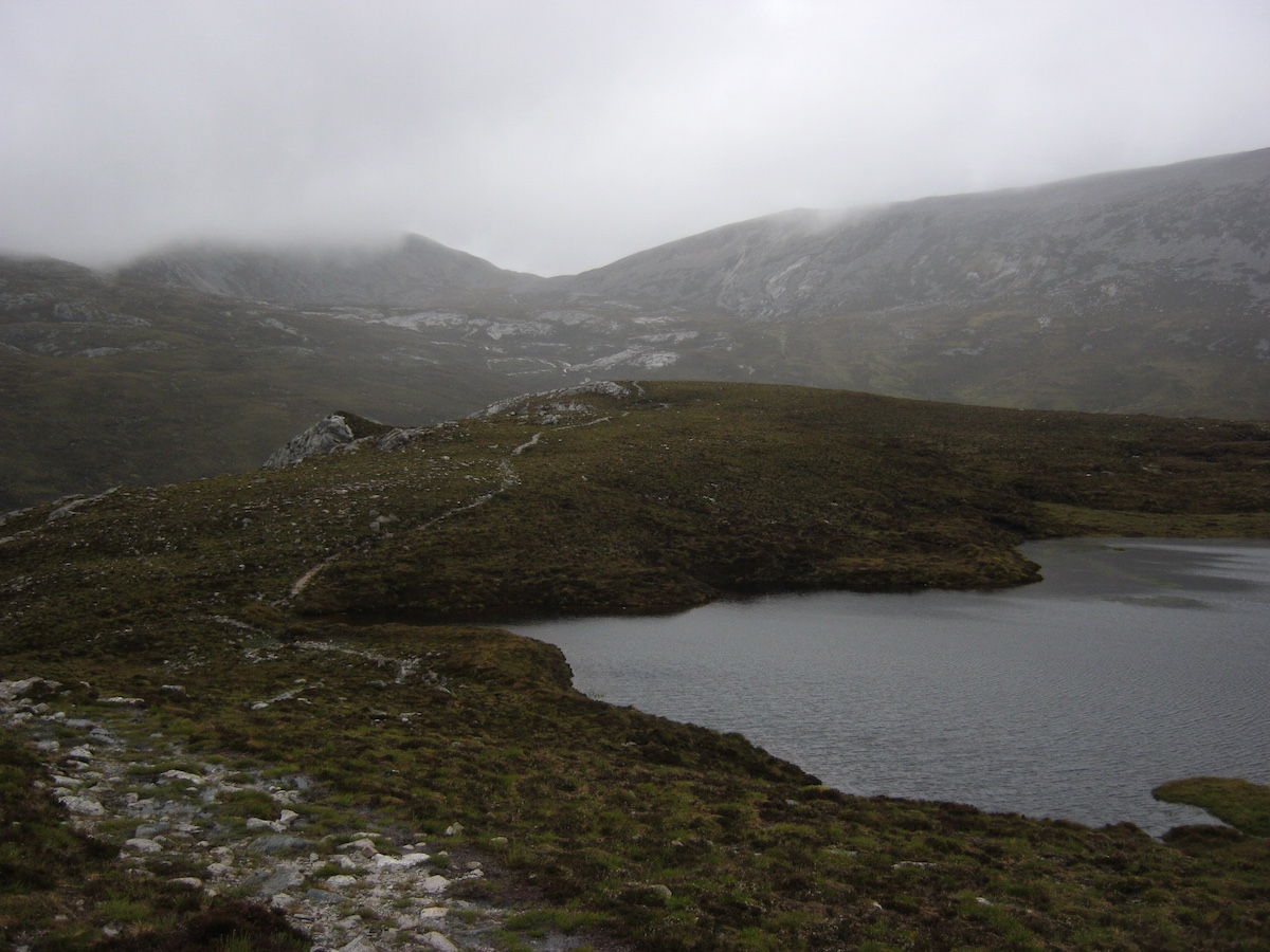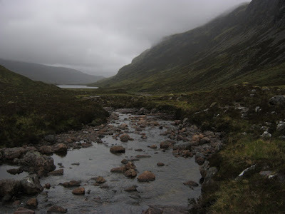 Loch HournThe guidebook says this is a very rough section of trail but, actually, it was a breath of fresh air for me. The weather had begun to improve, there were no big changes in elevation, and the terrain underfoot was far easier than the bushwacking and vertical bog I'd struggled with the previous day. Aware that I only had a few miles to cover that day, I took my time and enjoyed the atmospheric views.