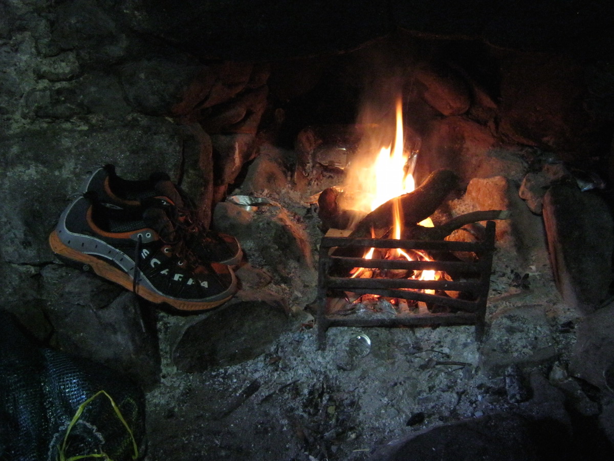 CorryhullyMark and Brian, the two CWT hikers I had met earlier, were already at the bothy drying out. We chatted about the trail and about their plans for the next few days. After a while, they decided they were going to hike further and camp – Corryhully is only a few miles from the road, after all, and I guessed they wanted to achieve more miles for their first day. Meanwhile, I set to work chopping kindling, and half an hour later I had a good blaze going in the fireplace to dry out my gear.