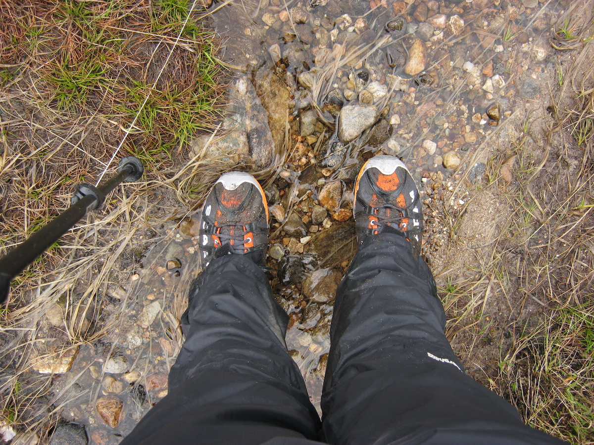 The first river crossingAfter rolling up my trousers, I waded in. It was bloody cold, but the water only came up to my knees and there was little risk of being swept away. At the far bank, I was relieved at having survived my first river crossing, and it hadn't even made me any wetter than I already was!