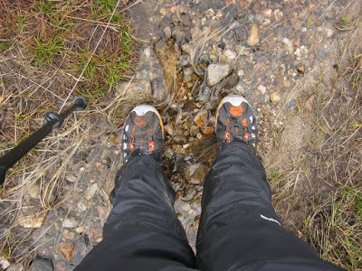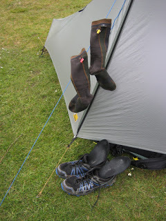 I carried two pairs of shoes with me throughout the walk, but the Scarpa Spark GTX proved a poor choice: too heavy to justify carrying as camp shoes, but nowhere near as good as my Inov-8 Roclites for trail use. After the second day I never wore them for walking again. It was good to have dry footwear to change into at the end of each day, but I could have achieved that goal with a much lower weight penalty. We live and learn!