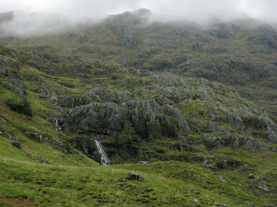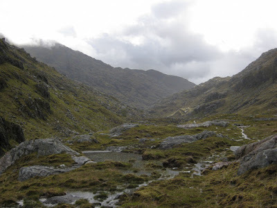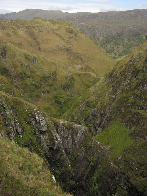 But the descent on the other side of the bealach was something else. The path disappeared in a steep morass of swampy ground, eroded by the boots of many hikers. Water streamed from muddy ledges and the very ground I trod was a saturated sponge, releasing a litre or more of water with every step. Slosh - slosh - squelch - slosh - splat! – it got a little monotonous after a while, and I began to crave firm, dry ground.