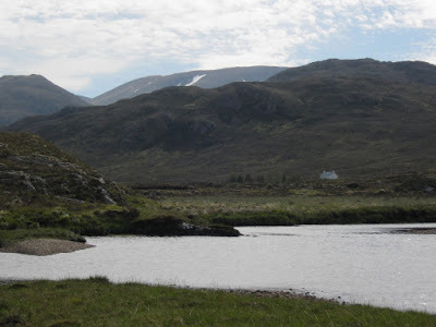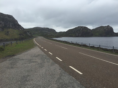 The beautiful and mysterious Loch StackI started walking and soon settled in to a pace and gait that felt comfortable. My shin twinged on the downhill sections, but they were very gentle on the tarmac road. It felt galling to bypass this section of spectacular wildness, but the road walk wasn't so bad, and it felt good to be making a good pace for once.