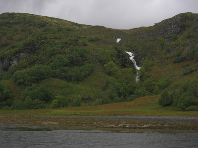 I woke to muggy, cloudy conditions, and found that I'd managed to twist my sleeping bag completely around myself as I slept. Rain began to dot the flysheet as I packed. I consulted the guidebook, which promised some boggy and rough ground on the descent to Glenfinnan, and decided to wear my Goretex trail shoes that day. I guess I wanted to avoid wet feet for as long as I could.