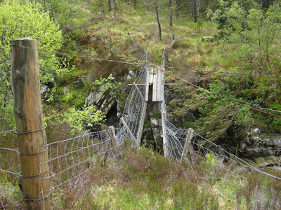 The only CWT trail marker I saw on the entire journey The worst bridge on the Cape Wrath TrailI spent an hour or two flailing around in bogs, thickets of heather, and trying to dodge "NO PUBLIC ACCESS! LOGGING OPERATIONS!" signs. It was not a high point of my CWT experience.