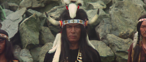 Joe ShishidoHavingsaid that, The Alaska Story was by no means a chore to sitthrough and remains worth a look for its breathtaking locations shotby cinematographer Kozo Okazaki, who worked with many of Japan’stop directors. Masaru Sato’s elaborate score is also inspired attimes. Leading man Kinya Kitaoji was likely cast for his physicaltoughness and endurance rather than acting ability, but he’sadequate anyway. The only other Japanese character is played by JoeShishido, who steals the show here as the forthright George Oshima,Yasuda’s real-life friend, who seems to have been a sort ofwandering lone adventurer. Other well-known Japanese actors appear asInuit, including Eiji Okada as Amaohka, Kyoko Mitsubayashi asNebiro, and Hideo Gosha favourite Isao Natsuyagi, while Tetsuro Tanbapops up as a Native American chief – and I must say he does lookthe part! But the real star of this film is nature herself.