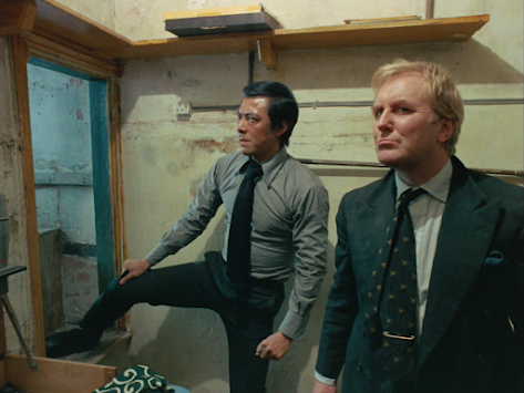 Jiro TamiyaThis oddity is an independent Japanese-British co-production from acompany called Akari, which seems to have been formed by star JiroTamiya and director Terence Donovan especially for this movie. Tamiyaplays Kimura, a secret service man who goes to London on a covertmission. A Professor Bewsley (John Welsh) has found a way to producesynthetic fuel from hydrogen (or sommat) and Kimura must prevent itfrom falling into the wrong hands – but of course that’s all justa Hitchcock-like MacGuffin to set the plot in motion. Along the way,Kimura forms an uneasy alliance with British secret service manAlexander (Robert Hardy) and is seduced by the mysterious Della(Carolyn Seymour).