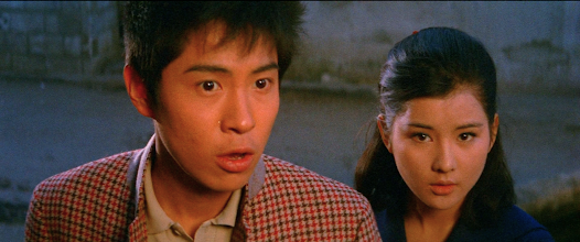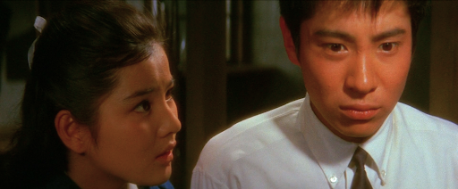 Youngstars Mitsuo Hamada and Sayuri Yoshinaga were a joint box officephenomenon in Japan in the 1960s, and this was the 15th of43 films in which they co-starred, all of which were made in thatsingle decade. Mitsuo Hamada (then 19) later came very close to beingpermanently blinded in an assault in 1966, but gradually recoveredand continued acting until 2015. Like Yoshinaga (then 17), he wasalso a popular singer. She had won the Blue Ribbon Best Actress awardfor Foundry Town the previous year and is still acting at thetime of writing. It’s not difficult to see why they were popular,and the fact that this film – one of their biggest hits – worksas well as it does is partly down to them, even if Hamada goes overboard at times. It also helps that thefilm’s point about class is made effectively without the filmmakersfeeling the need to patronise the audience by spelling it out.Furthermore – in my opinion anyway – the ending of the picture isexactly the right one.