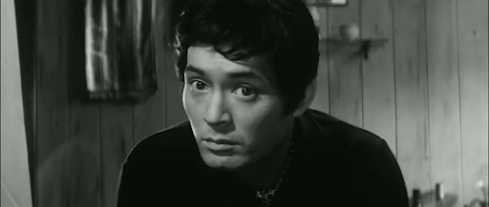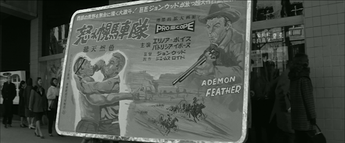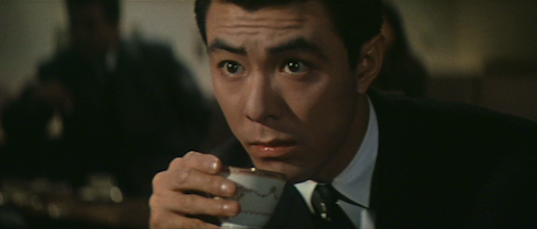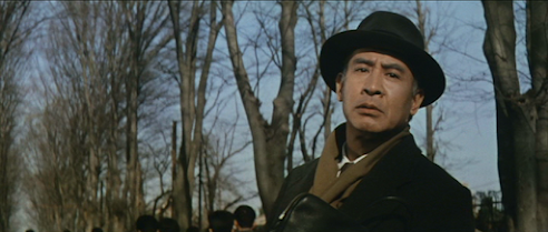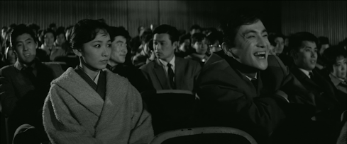 Ona cultural note, there’s a scene in which Akiko visits a barpopular with students where they sing Russian folk songs in Japaneseand all seem to know the words, an odd phenomenon also featured inthe 1956 film Gyakukosen. Incidentally,although there’s a close-up of the poster for the film Hasuiketakes Akiko to at the cinema, I was unable to identify it despitetranslating the text – was it such a low-budget piece of crap thatit’s vanished without a trace or was it a fictional film that neverexisted in the first place?