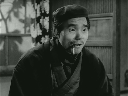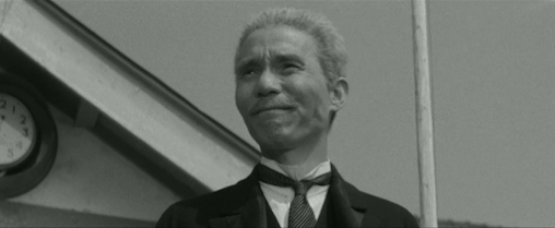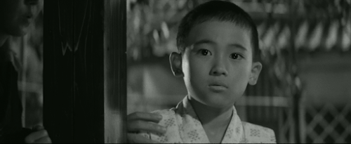 If leading lady Yukiko Shimazaki,who plays Ogata’s rather child-like wife, is unfamiliar, that’sperhaps a symptom of Shimizu’s lack of interest in working with bignames – she was not a major star, although she had been active infilms from 1950 and went on to appear in Seven Samurai. Shewas also a chanson singer and, in 1963, she left the film businessand opened her own chanson bar in Ginza named Epoch, which she ranfor many years. A more familiar face among the supporting cast isJukichi Uno, who plays a kindly landlord and seems to have appearedin almost every shomin-geki made during this period.