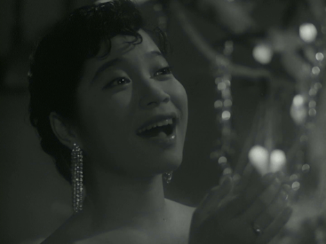 Yasumi HaraAlthoughit lacks big Hollywood-style production numbers, this Shochikuproduction has enough songs that it certainly qualifies as a musical.It was based on a story by the prolific Toshihiko Takeda (1891-1961),whose work also provided the basis for Tomu Uchida’s Policeman(1933) and Hiroshi Shimizu’s Why Did These Women Become LikeThis? (1956). It was the third film to be directed by MiyojiIeki, who would become known for films dealing with childhood,although this particular film has the feel of an assignment, and itsmain raison d’être was probably to function as a vehicle forsinging prodigy Hibari Misora. She was 12 at the time but looksyounger; it was her fifth film appearance but her first starringrole. Here, she comes across as a sort of Japanese Shirley Temple,which might not be entirely by chance – its worth remembering thatthe film was produced during the occupation when filmmakers neededthe approval of the American authorities. As well as Hibari’ssinging, Keiko Tsushima – a trained dancer as well as actor –also gets to strut her stuff.