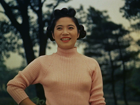 Chiemi EriThisthird film in the Toho series kicked off by the previously-reviewedSazae-san was the first to be shot in colour, but otherwisedirector Nobuo Aoyagi repeats much the same recipe, even down toChiemi Eri dancing along the street singing ‘Bippidi-Boppidi-Boo’,as she had also done in the first film, although there are fewersongs this time around.