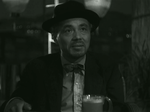 Ichiro SugaiMeanwhile,Mitsuko’s older brother, Kenzo (Yasumi Hara), a musician, hasfinally made it back to Yokohama after being posted overseas duringthe war and is searching for his sister but has also become involvedin a smuggling racket. One night he runs into Osamu, who is extremelydrunk and singing a song which Kenzo wrote but never published. Kenzoknows that Osamu could only have heard the song from Mitsuko, butOsamu is too intoxicated to provide any useful information. WhenOsamu subsequently goes blind as a result of drinking bootleg liquorcontaining methanol, Kyoko’s efforts to raise money to pay hismedical bills result in her being forced into helping the same gangof smugglers that Kenzo is involved with...