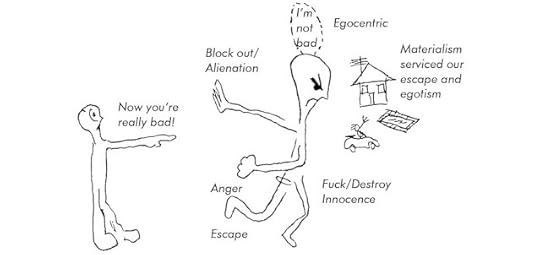 When I first encountered this narrative, in his first book Free : The End of the Human Condition, I felt divided. On the one hand, it was reassuring that someone recognised that there was a problem of this kind and claimed to have the explanation which would solve it. On the other hand, his book was so drenched in an extreme idealist’s vision of the world that it felt more like torture than liberation to read it. He would deny that it was idealistic, because it is a defence for why our behaviour is not ideal. But when someone says that “sex is an attack on innocence” or talks about how an ornate spoon represents several starving Ethiopians, these things are dagger wounds to the insecure ego regardless of the context. And I had never even had sex. But here was I conjuring up the image that I was somehow molesting a small child within me by masturbating to lustful fantasies.