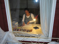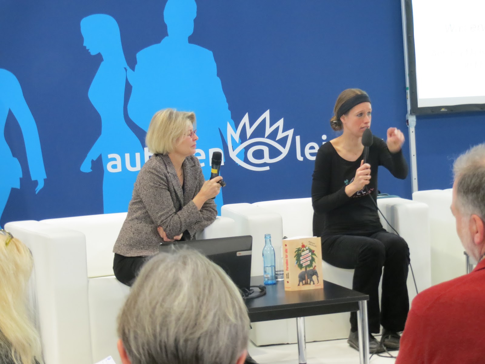 Köstlich war die Veranstaltung mit Antonia Michaelis. Eins ihrer Bücher hat mich so inspiriert, dass ich dazu eine 70x100 Illustration erschaffen musste - "Der letzte Regen", der jetzt leider schon verramscht ist - so ein fantasievolles Buch, eine Schande ist das! Seitdem mailen wir hin und wieder und konnten uns diesmal zum ersten Mal kurz "in echt" sehen. Wenn Antonia kommt, sollten sich Verlage und Lektoren ihre Ritterrüstung anlegen. Zu trockene und nüchterne Fragen werden von ihr einfach weggeschwemmt wie tote Äste. Sie hat auch keinerlei Lust, sich in irgendwelche Blabla-Antworten drücken zu lassen - nööö. Sie sprudelt genauso wie ihre Bücher - extrem fantasievoll, unbedingt lesen!! - Ich kann mir gut vorstellen, dass sie nicht oft ein Gegenüber findet, mit dem sie sich wirklich messen kann. Bestimmt manchmal frustrierend!