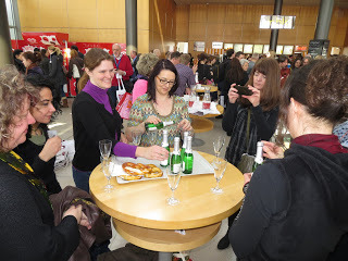 Heidi Schmitt (erster Preis Kategorie Sachbuch) war leider noch nicht beim Fotografieren dabei, aber dann beim Sekt (zweite von rechts).