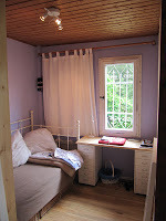 Das kleine Zimmerchen von 4 qm habe ich mir gerade erst im märkischen Naturpark eingerichtet. Es kommt dem Traum vom kleinen Häuschen abseits im grünen Garten am nächsten. Nur, dass es in meinem Garten ausschließlich dieses Häuschen gibt und nicht noch irgendwo ein großes Haus :) Hier laufen sogar Rehe am Fenster vorbei, wenn ich hinausschaue, weil in meinem Kopf gerade nichts weiter als gähnende Leere zu finden ist.