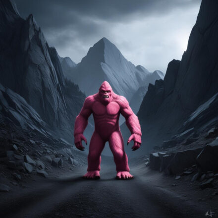 “Looks like an angry Bigfoot, and it has been showing up in my dreams since I was a young child. I could always see him coming, down from the mountain…He would always find me and scoop me up and take me away. Also, he is pink. But a very menacing pink.”
