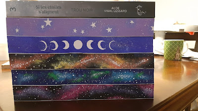 Si les étoiles s'alignent est maintenant complet! Vous pouvez mettre la main sur les trois tomes de la trilogie dès maintenant (on m'a mentionné, au SLM, que le tome 1 est en rupture de stock dans plusieurs librairies). Vous pouvez toutefois commander vos exemplaires directement sur le site web de Luzerne et profiter de la livraison gratuite dès 60$. Sinon, venez me voir dans un prochain Salon du Livre! :P