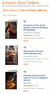 , cracked Amazon's Top 100 Best Seller's List in the teen fantasy ebook category!! It hit #74 (check out the screen shot!). You guys really rock my world! I can't thank you enough for purchasing a copy and spreading the word. I am humbled and excited by your support!