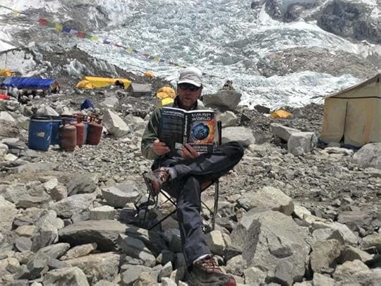 That time Warpworld was read at Mount Everest base camp! Thanks, Tim & Becky Rippel of Peak Freak Adventures!Now, yeah, it’s here.And whatever happens from here, there’s going to be five books up on the shelfin the den with our names on them that, for the moment, will represent the sumtotal of our collaborative writing effort. When my proof copy gets in nextweek, it’s going to be a real pleasure to put that fifth book up there after Ilook it over.