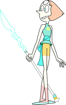 2. Pearl design – So this ties into my first point, but what really stuck with me was how the design for the Pearl race in VCTP looks so much like the character design for Pearl in SU. Pale skin, insanely thin, blue eyes, an oblong-shaped head (although SU Pearl’s head looks oblong because of her hairstyle) and pearls on the forehead (at least VCTP Pearl royalty has them, and the pearls are for decoration, not an embedded facial feature). Even Princess Loihi’s dress design is similar to that of Blue Pearl, with the blue gauzy material.
