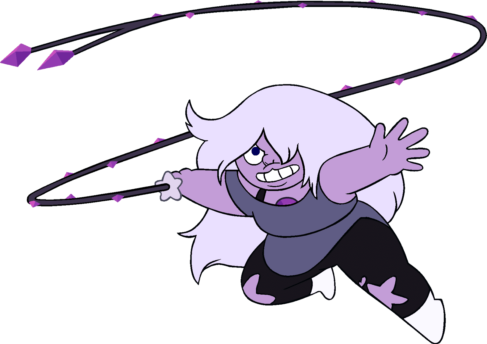 4. Shapeshifting sidekick – So apparently all Gems from SU have the power to shapeshift, but only one character does it on a regular basis: Amethyst. She’s sassy, opinionated, and feels a bit like a outsider because of her history. She uses shapeshifting both to protect herself as well as for the enjoyment of being other people/things, and she will go out of her way to protect the male hero, even at risking herself. VCTP’s Bubble (yes, that’s really her name) matches this description to a tee, although her blue, watery visage also reminds me of Lapis Lazuli. Also, both have a tentacle / whip weapon motif (minds out of the gutter, please).