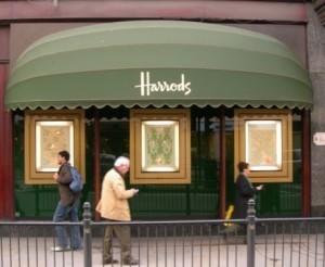 Whenever my husband and I have time to kill in London, we pop up out of the Knight’s Bridge Tube Station (like prairie dogs checking for coyotes) and step beneath the big green awnings of what is arguably the world’s most famous department store: Harrods.