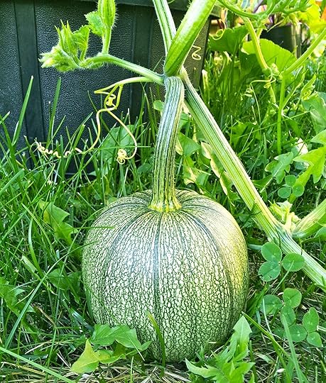 My son wanted to grow pumpkins this year. I told him that summers probably aren't long enough here. He was startled when I showed him the seed - it looked just like a pumpkin seed.Every day I run to the back yard to see if we've achieved orange. Not yet.