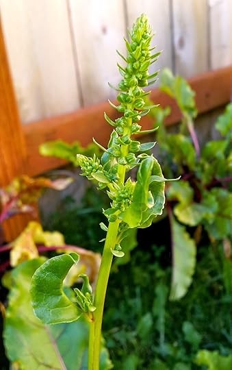 I planted beets in tall, thin containers, without considering how much depth they'd need for roots. The first few I pulled had curled roots, spiraling at the bottom of the pot. This is the first to bolt.