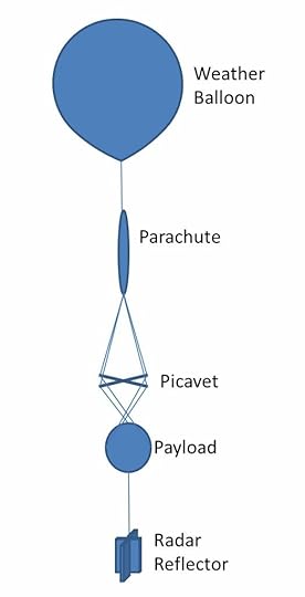 Above the payload, a parachute is attached to control the descent of the balloon. For safety, a radar reflector is attached below the payload.