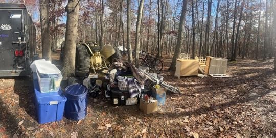 I separated years of my life into separate piles: clothes, trash, electronics and appliances, metal, and wood. I saved some clothes, all of my books, some mementos of family members loved and lost, but I didn’t save much. I simply don’t have the room.
