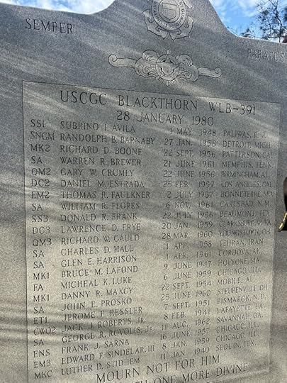 It was also right by the memorial for the USCGC Blackthorn, a coast guard ship that sank in 1980. I’d never heard of the tragedy and had no idea the memorial existed, even though Dad was in the coast guard. As we unknowingly neared the memorial, Dad told me he actually helped with the rescue and recovery efforts. He thought there was a memorial somewhere nearby and sure enough, we started seeing signs. We pulled over.