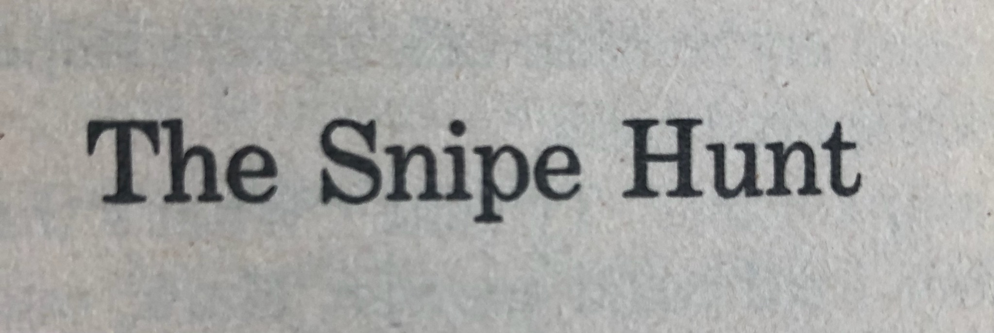 It's Initiation Night for the Camping Club, and you know what that means: a good ol' fashioned snipe hunt! On the agenda tonight will be roasted marshmallows, spooky sounds from the shadows and, for dinner, a delicious red herring about a murderous prison escapee. Followed by the main event of the titular hunt. The juvenile camper pledges get sent into the woods alone, with the instructions to turn off their flashlights after a certain distance and try and capture a snipe in a burlap sack.