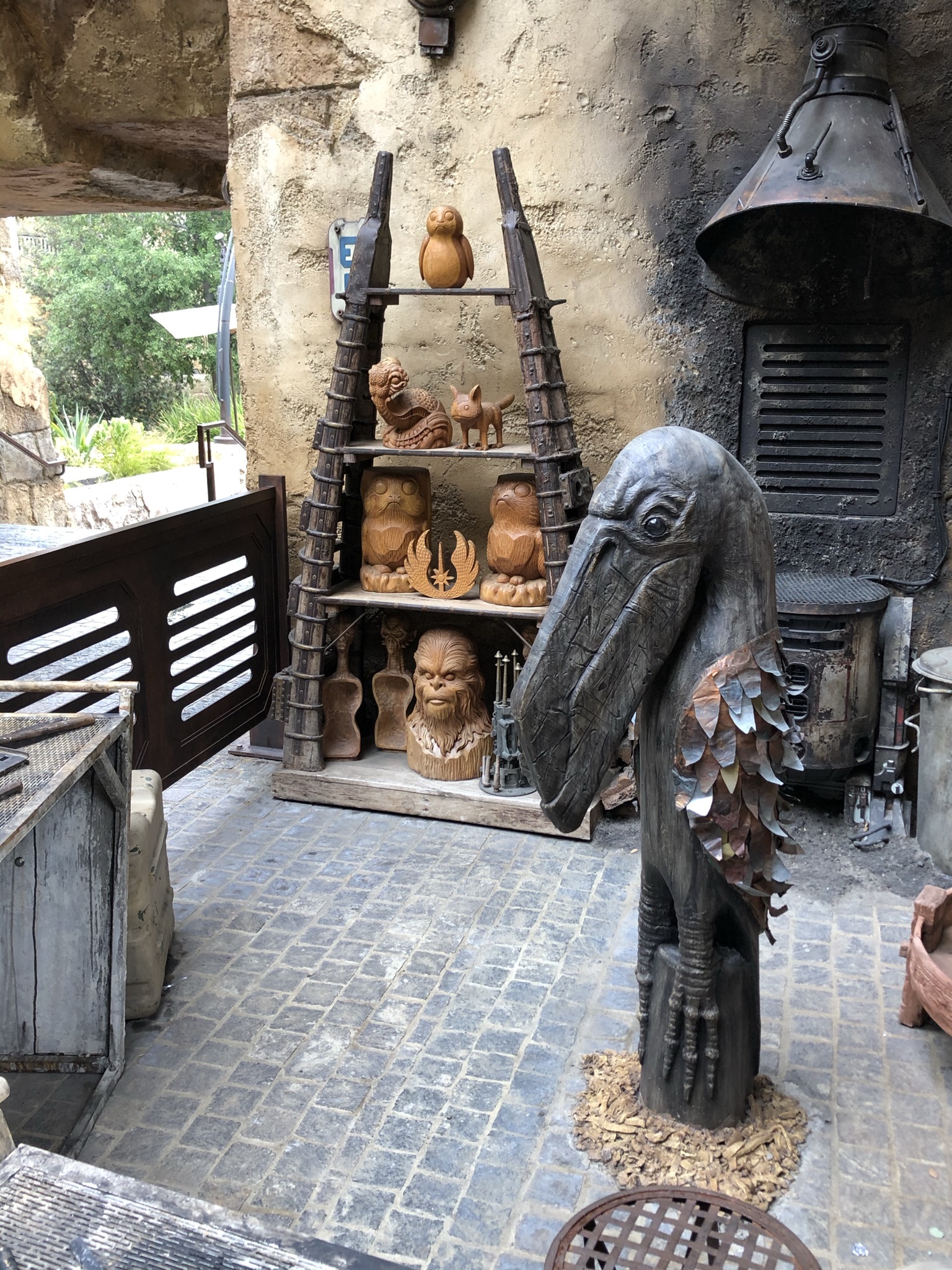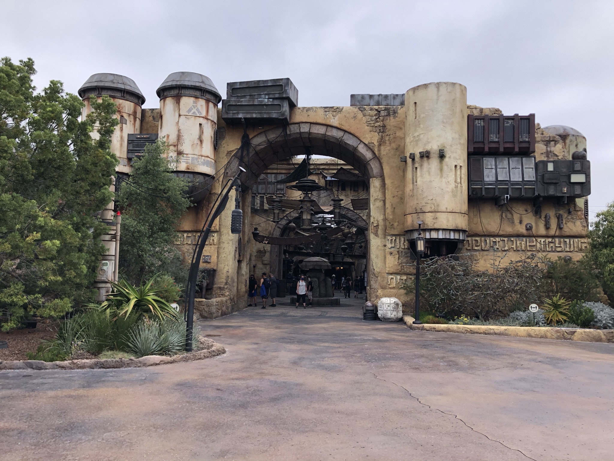 Since we had a bit of time before Group 11 was called in, we wandered about Galaxy's Edge, marveling at the characters and structures, the elaborate rock formations and the way things had a brand-new yet still lived-in feel. We also realized we had enough time to try out the Millennium Falcon: Smugglers Run ride, which like Rise of the Resistance I had purposefully avoided learning too much about before riding. I'm glad that I chose to avoid spoilers, as it were, because the ride was a very pleasant surprise (I'm also glad we chose the Pilot position when given the choice between Pilot, Gunner or Engineer). I'm going to avoid going too into detail about the particulars about any of these rides in case, like me, you want to be surprised by them when you visit the park, but it's not giving much away to say that it is very interactive and fun. It's actually kind of hard to imagine being a kid going to Disneyland for the first time and experiencing these rides and then comparing them to something like The Enchanted Tiki Room or what have you. There's certainly a sophistication gap that someone like me who grew up with the latter can find charming, but that kids these days may just find confounding.