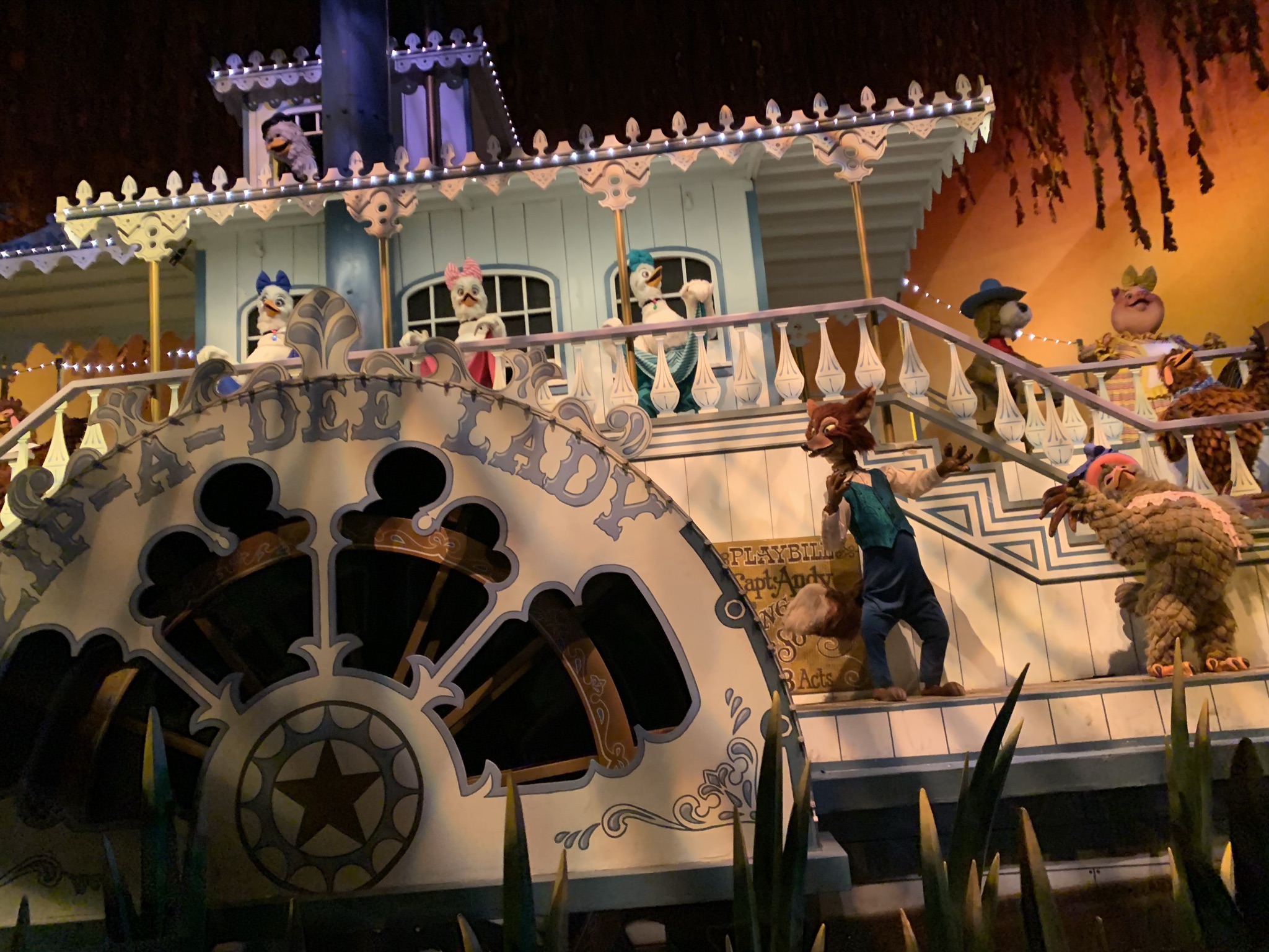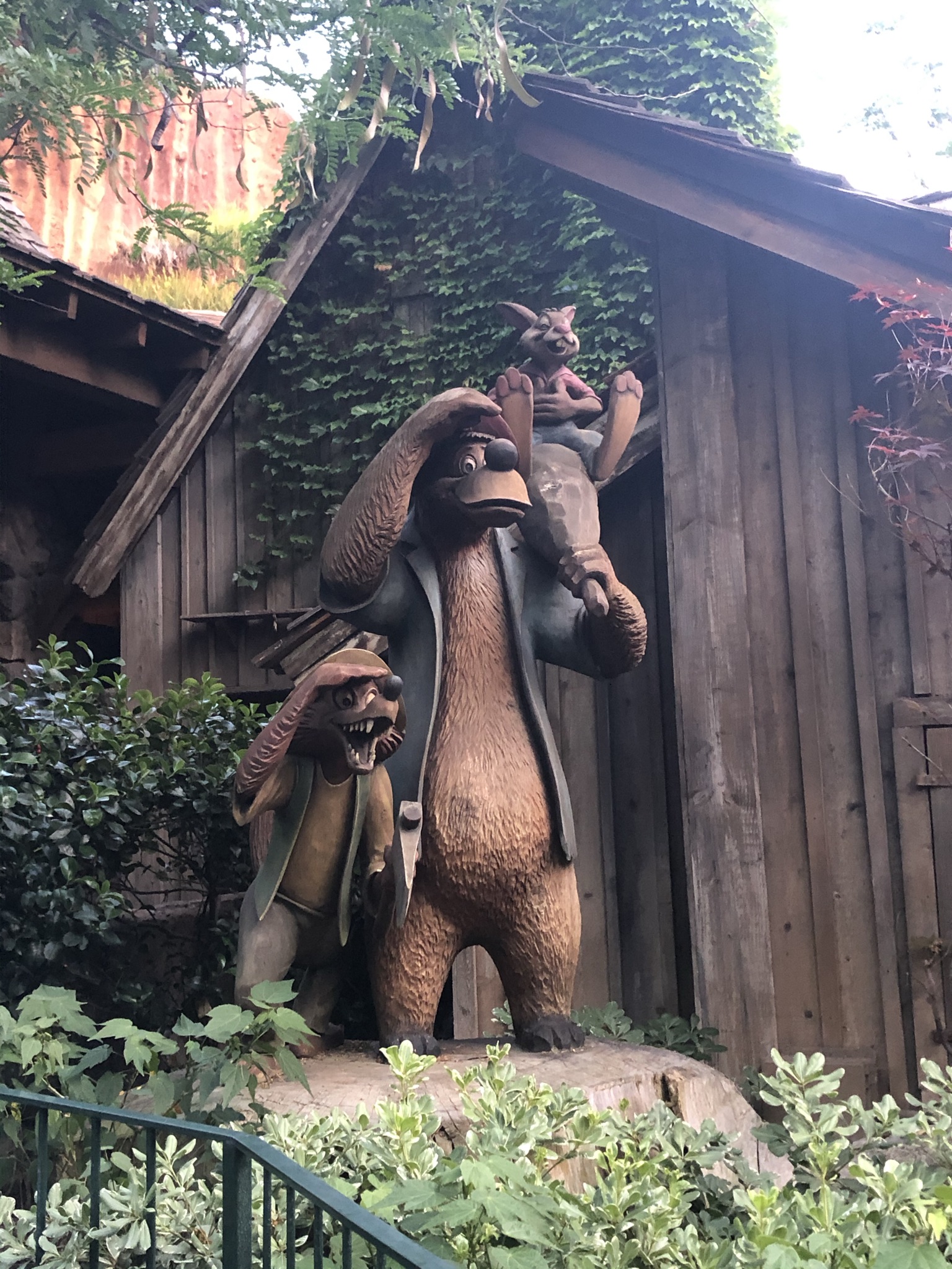 As night fell, we headed to Splash Mountain for what was likely our last ride on the original attraction before its repurposing. As it was getting a mite chilly out, the line was fairly short, absent those park guests that feared spending their last precious moments before closing shivering and soaked to the bone. As the haunting melody of "All I Want" played over the loudspeaker, Sheila and I settled into our little private log for one last tour through Br'er Rabbit's story. After the ride launched, we positively soared down the artificial waterways; had it always moved so quickly? Yet as we sped inevitably toward the Laughin' Place, I couldn't help but notice that certain parts of the ride had gone dark, certain bits of audio missing. Even Br'er Rabbit himself, upon closer examination, was a bit threadbare. The eponymous Song of the South had become faded and melancholy, an echo of an earlier era funneled to a last gasp delivered by mocking vultures jeering our demise in ignorance of our inevitable triumph on the other side of a fearsome drop.